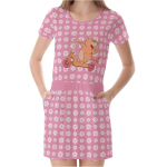 嘟嘟貓玩滑板女生圓領雙口袋連身迷你洋裝
