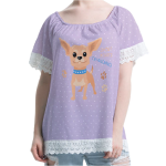 短毛吉娃娃女生拼接蕾絲甜美風一字領上衣