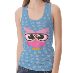 戴眼鏡粉色貓頭鷹女生大U領合身簡約背心